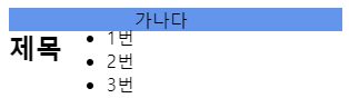파란색 박스부분은 원래 밑에 위치 해야하나 제목과 목록에 float을 줘서 밀고 올라온 경우에 clearfix를 적용해보겠습니다.