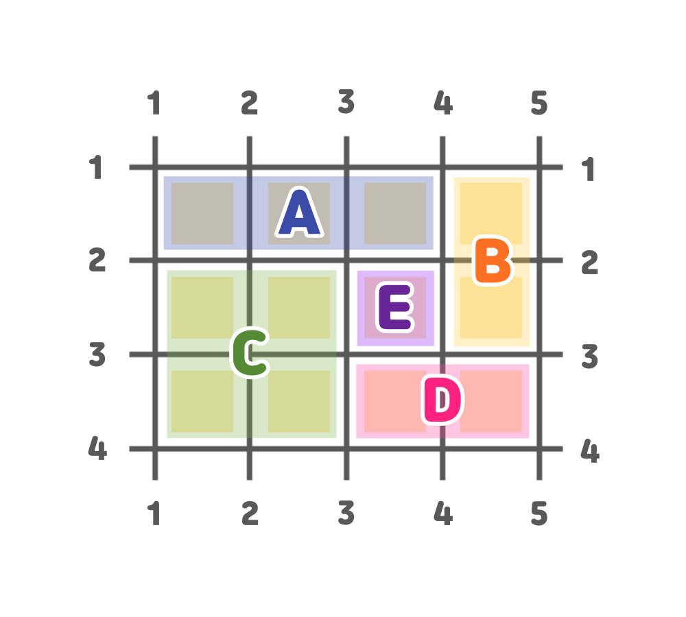 각 셀의 영역을 지정하는 속성이다. 그리드 레이아웃은 아래의 이미지처럼