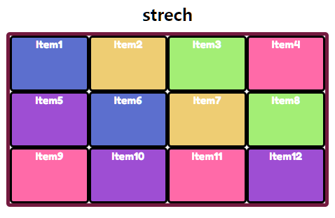 - justify-items : 아이템들을 가로 방향으로 정렬한다.
