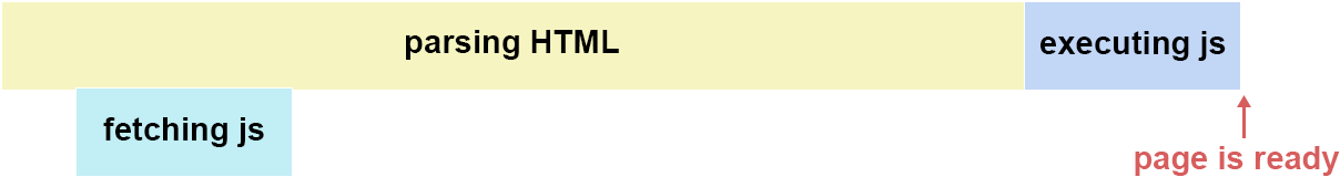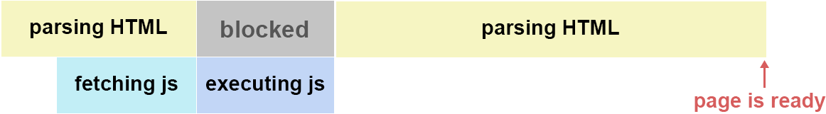 - 단점 : 스크립트가 준비될 때 까지 HTML 파싱을 멈추기 때문에 사용자가 웹페이지를 보는데까지 많은 시간이 소요된다.